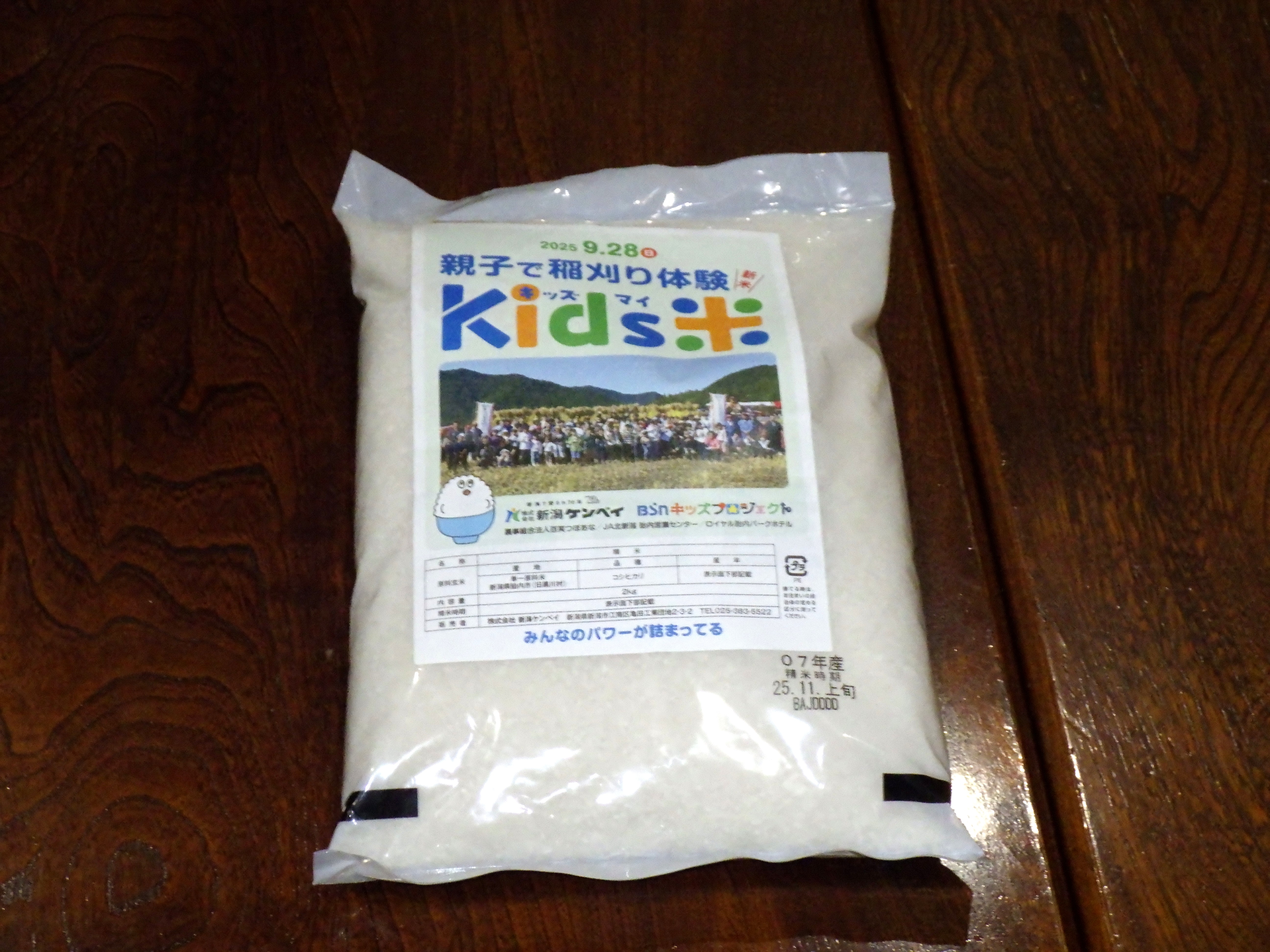 お米は、キッズチャレンジ「親子稲刈りツアー」で県内のこどもたちが収穫した新米【 Kids米 】です。