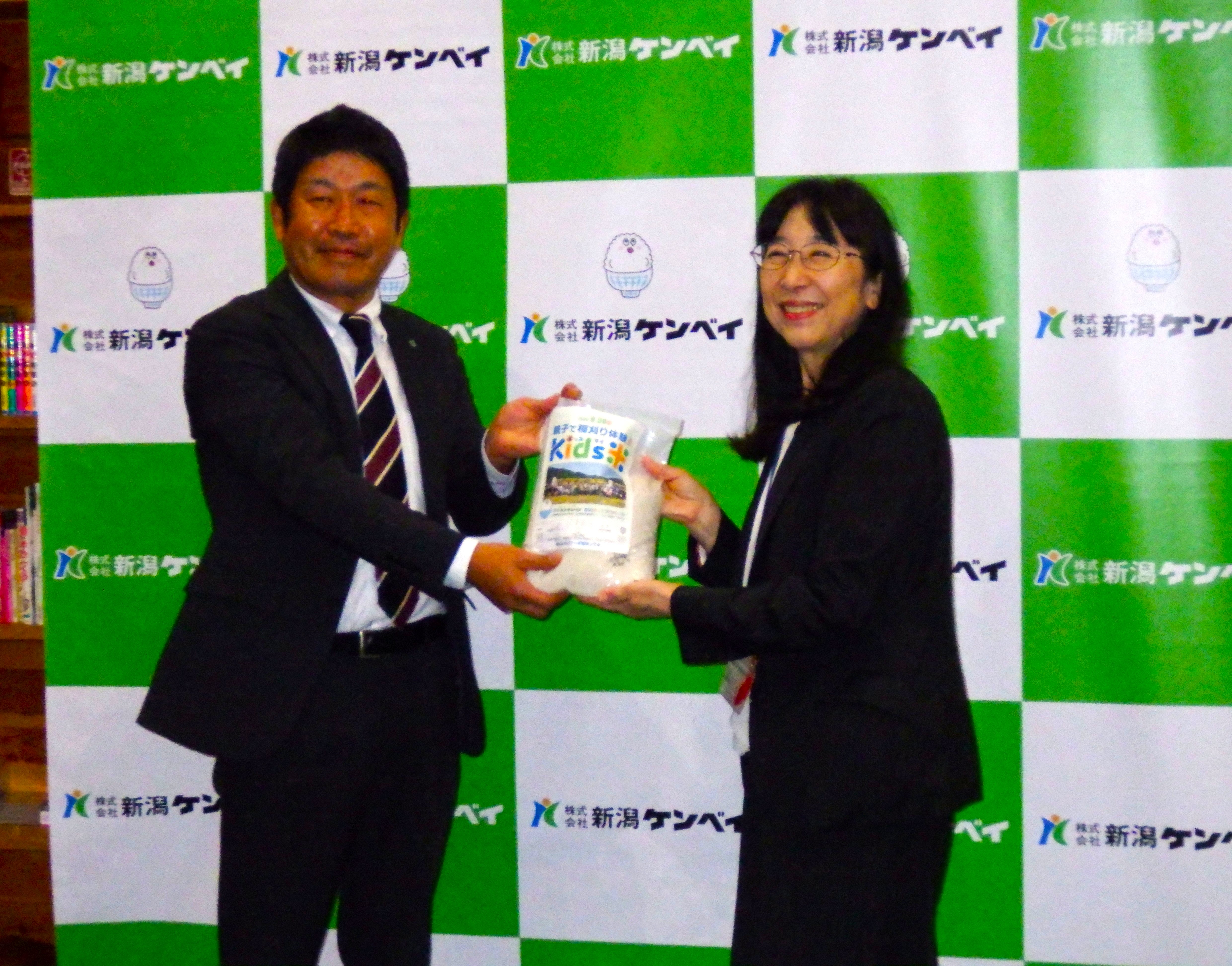 この度、株式会社新潟ケンベイ様より、 市内のこども食堂へ、お米 500㎏をご寄付いただきました。