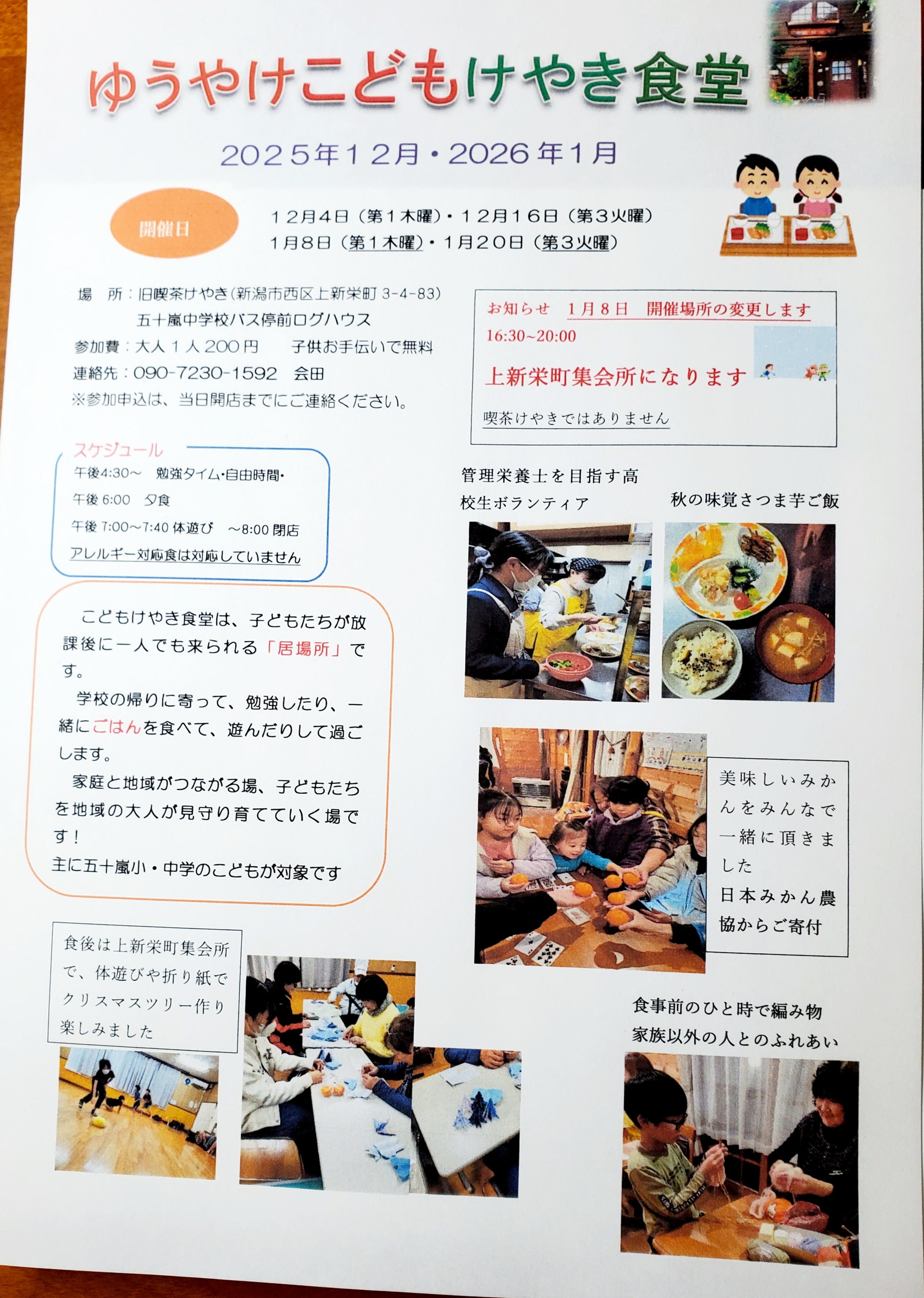 - 食事は子ども(中学生以下)100円、一般300円ですが、子どもさんに限らず、どなたでもお越しください。